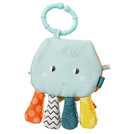 Книжка для купания со множеством увлекательных деталей для веселых игр в ванне, бассейне или на пляже. За удобное колечко её можно подвесить в манеж, кроватку, коляску или прицепить к развивающему коврику. Малышу будет интересно листать книжку, рассматривать, мять и щупать. Звёздочка-погремушка тренирует слуховое восприятие. Колечко для прорезывания зубов успокаивает дёсны. Шуршащие щупальца стимулируют тактильное восприятие и мелкую моторику ребенка. Безопасное зеркальце активизирует воображение. Сертифицировано 0+ мес. для ЕАС. Возраст ребенка — 6+ месяцев Страна бренда — Германия Страна производства — Шри-ланка