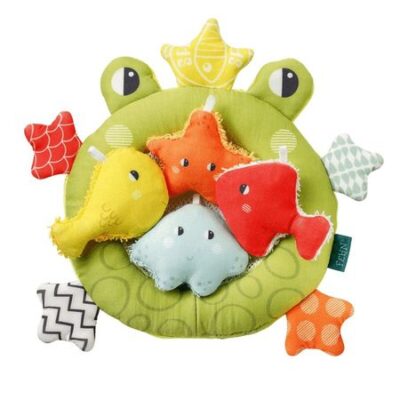 Набор мягких водонепроницаемых игрушек для веселой рыбалки во время купания. Сачок в виде лягушки с шуршащими лапками и маленькие разноцветные фигурки с погремушками — малышу нужно выловить и сложить в сачок фигурки. Игрушка развивает координацию и внимание. Погремушки и шуршащие элементы стимулируют мелкую моторику и слух малыша Различные текстуры ткани и занимательные детали активизируют тактильное восприятие и воображение. Сертифицировано 0+ мес. для ЕАС. Возраст ребенка — 6+ месяцев Страна бренда — Германия Страна производства — Шри-ланка