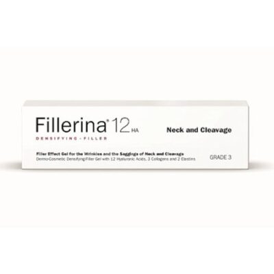 Fillerina 12HA Densifying-Filler Specific Zones Каждый состав Fillerina 12HA Densifying-Filler Specific Zones содержит активные ингредиенты для наполняющего и уплотняющего действия в соответствии с индивидуальными потребностями обрабатываемой области. Fillerina 12 HA Densifying- Filler Neck and Cleavege (шея и декольте) Дермо-косметический гель, который способствует разглаживанию круговых морщин на шее и в зоне декольте, обеспечивает укрепляющий эффект ткани этих областей. Подходит для любого типа кожи. Может использоваться отдельно или комбинироваться с другими продуктами линейки и прочими косметическими и уходовыми средствами. Grade 3 (Уровень 3) предназначен для коррекции начальных возрастных изменений, предупреждает старение кожи и появление морщин. Уровень означает концентрацию активных компонентов, выбор уровня рекомендуется делать в зависимости от исходного состояния кожи и желаемого эффекта.