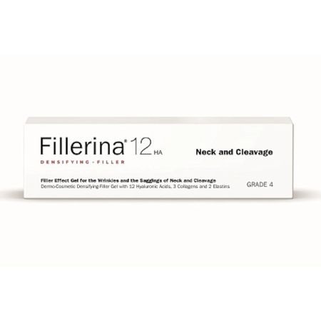 Fillerina 12HA Densifying-Filler Specific Zones Каждый состав Fillerina 12HA Densifying-Filler Specific Zones содержит активные ингредиенты для наполняющего и уплотняющего действия в соответствии с индивидуальными потребностями обрабатываемой области. Fillerina 12 HA Densifying- Filler Neck and Cleavege (шея и декольте) Дермо-косметический гель, который способствует разглаживанию круговых морщин на шее и в зоне декольте, обеспечивает укрепляющий эффект ткани этих областей. Подходит для любого типа кожи. Может использоваться отдельно или комбинироваться с другими продуктами линейки и прочими косметическими и уходовыми средствами. Grade 4 (Уровень 4) предназначен для коррекции возрастных изменений, сокращает морщины и уменьшает неровности микрорельефа кожи. Уровень означает концентрацию активных компонентов, выбор уровня рекомендуется делать в зависимости от исходного состояния кожи и желаемого эффекта.