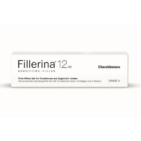 Fillerina 12HA Densifying-Filler Specific Zones Каждый состав Fillerina 12HA Densifying-Filler Specific Zones содержит активные ингредиенты для наполняющего и уплотняющего действия в соответствии с индивидуальными потребностями обрабатываемой области. Fillerina 12 HA Densifying- Filler Cheekbones (скулы) Дермо-косметический гель, который помогает увеличить объем скул и придать четкость овалу лица. Подходит для любого типа кожи. Может использоваться отдельно или комбинироваться с другими продуктами линейки и прочими косметическими и уходовыми средствами. Grade 4 (Уровень 4) предназначен для коррекции возрастных изменений, повышает плотность и эластичность кожи, компенсирует потерю объема в области скул. Уровень означает концентрацию активных компонентов, выбор уровня рекомендуется делать в зависимости от исходного состояния кожи и желаемого эффекта.