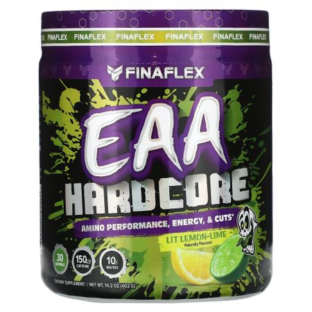 Описание Аминокислоты, энергия, порезы150 мг кофеина10 г матрицыПищевая добавкаFINAFLEX® EAA HARDCORE ™ — это аминокислотная матрица Xtreme EAA, созданная для повышения работоспособности, энергии и сокращения волос во время тренировок! Беспрецедентная формула EAA HARDCORE ™ содержит незаменимые аминокислоты (EAA), аминокислоты с разветвленной цепью (BCAA), L-глютамин для восстановления, L-аргинин для увеличения объема мышечной массы и имеет режущую матрицу, предназначенную для повышения энергии, снижения веса, и режет! ПЕРЕСМОТРИТЕ СЕБЯ® с EAA HARDCORE ™!Принцип действия EAA HARDCORE ™ в организме:Повышение эффективности Помпа и восстановлениеМатрица для резки Рекомендации по применению В качестве пищевой добавки смешайте 1 порцию (1 мерную ложку) EAA HARDCORE ™ с 240–240 мл (8–16 жидк. Унциями) холодной воды. Пейте EAA HARDCORE ™ за 15–30 минут до занятия. Для достижения наилучших результатов выпейте половину перед тренировкой, а остальное пейте во время тренировки. НЕ пейте более 1 порции в день. НЕ превышайте рекомендуемую дозировку. Ингредиенты Лимонная кислота, натуральные ароматизаторы, цитрат натрия, сукралоза, диоксид кремния, ацесульфам калия (ace-k).Содержит 150 мг кофеина в одной порции.Информация для больных фенилкетонурией: Содержит фенилаланин. Предупреждения Хранить в недоступном для детей месте. Не принимать в период беременности и кормления грудью. Проконсультируйтесь с врачом перед использованием, если у вас есть какое-либо заболевание, семейный анамнез или если вы принимаете другие лекарства или добавки. Предназначено для здоровых взрослых старше 18 лет. Не следует превышать рекомендуемую дозировку. Немедленно прекратите использование, если у вас плохая реакция. Не использовать более 8 недель. Прекратите прием за 2 недели до операции. Покупатель принимает на себя всю ответственность, если продукт используется не в соответствии с рекомендациями на этикетке. Продается по весу, а не по объему. Хранить в сухом и прохладном месте, не выбрасывая влагопоглотитель. Пищевая ценностьРазмер порции: 1 мерная ложка (13,4 г)Порций в упаковке: 30 Количество в 1 порции% от суточной нормы†Калории0 Всего углеводов0 г<, 0%Матрица эффективности незаменимых аминокислот7,5 г**Аминокислоты с разветвленной цепью (BCAA)