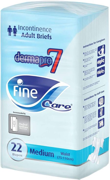 Fine Care Adult Briefs, with the patented DermaPro7 technology, offer optimal absorption and comfort throughout the day and night, as they were specially designed to fit the body contour. Fine Care Adult Briefs were designed with a thin double layered inner fabric that provides ultimate absorbency to ensure maximum protection and prevent leakage, in addition to the odor control ingredients that provide comfort and confidence during prolonged use. Fine Care Adult Briefs were engineered with a textile back sheet that offers ultimate comfort, and is noiseless during movement. Fine Care Adult Briefs, is the only product that helps protect against the 7 signs of diaper skin irritation.