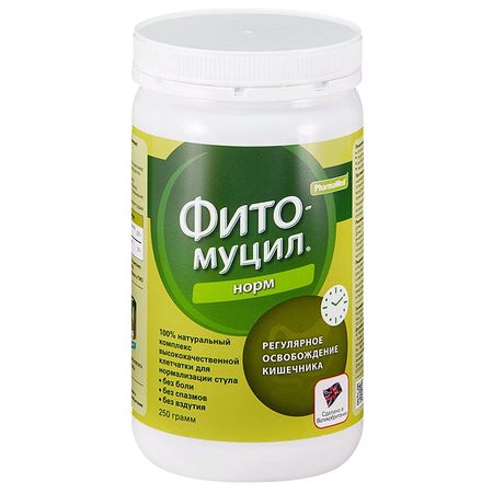 Растворимые волокна Фитомуцила в кишечнике впитывают воду, разбухают, превращаются в слизистый гель и размягчают стул, что способствует его легкому выведению. Нерастворимые пищевые волокна механически стимулируют стенки кишечника, активизируя его движения и выведение отходов. Таким образом, Фитомуцил одновременно воздействует и на содержимое кишечника, и на его слизистую оболочку, избавляя от запоров, вздутия и ощущения тяжести. Кроме слабительного эффекта, Фитомуцил создает благоприятные условия для роста собственной полезной кишечной микрофлоры, что способствует устранению дисбактериоза, который всегда имеет место при запорах.