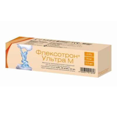 Препараты для лечения заболеваний опорно-двигательного аппарата. Имплантат вязкоэластичный стерильный для внутрисуставной инъекции ФЛЕКСОТРОН®, гиалуронат натрия 2,5%, 25 мг/мл, в вариантах исполнения ФЛЕКСОТРОН® Ультра и ФЛЕКСОТРОН® Ультра М – протез синовиальной жидкости, стерильный, прозрачный вязкоэластичный гель, содержащий гиалуронат натрия, получаемый методом бактериальной ферментации, в фосфатном буфере. Имплантат не содержит лекарственного средства для медицинского применения, материалов животного и (или) человеческого происхождения.