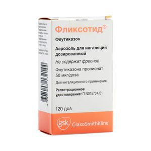 Показания к применению– базисная противовоспалительная терапия бронхиальной астмы (в т.ч. при тяжелом течении заболевания и зависимости от системных ГКС) у взрослых и детей старше 1 года– лечение хронической обструктивной болезни легких (в т.ч. хронического бронхита и эмфиземы).Применение при беременности и кормлении грудьюФертильностьОтсутствуют данные по влиянию на фертильность у человека. В исследованиях на животных не было выявлено влияния флутиказона пропионата на фертильность самцов или самок.БеременностьДанные о применении препарата у беременных женщин ограничены. Применение флутиказона пропионата во время беременности допустимо только в случае, если потенциальная польза для матери превышает возможный риск для плода.Результаты ретроспективного эпидемиологического исследования не обнаружили повышенного риска возникновения серьезных врожденных пороков развития (СВПР) после применения флутиказона пропионата по сравнению с другими ингаляционными кортикостероидами в течение I триместра беременности.Репродуктивные исследования на животных показали, что при значениях системной экспозиции, превышающих наблюдаемые при применении рекомендуемых терапевтических ингаляционных доз, наблюдаются только эффекты, характерные для ГКС.Период грудного вскармливанияВыделение флутиказона пропионата с грудным молоком у человека не изучалось.Когда после п/к введения препарата лабораторным крысам в период лактации были получены поддающиеся измерению концентрации вещества в плазме крови, флутиказона пропионат был также обнаружен в грудном молоке. Однако после ингаляционного применения флутиказона пропионата в рекомендуемых дозах его концентрации в плазме крови у пациентов, скорее всего, будут низкими.Применение препарата в период грудного вскармливания допустимо только в случае, если потенциальная польза для матери превышает возможный риск для ребенкаПротивопоказанияПовышенная чувствительность к компонентам препарата.Побочное действиеКандидоз полости рта и глотки, охриплость (после ингаляции необходимо полоскать рот и горло водой), парадоксальный бронхоспазм (требует отмены препарата, и продолжения терапии другими средствами); редко — развитие аллергических реакций (кожная сыпь, ангионевротический отек, диспноэ или бронхоспазм, анафилактические реакции); возможно понижение функции коры надпочечников, остеопороз, задержка роста у детей, катаракта, повышение внутриглазного давления.СоставДействующее вещество: ФлутиказонКонцентрация действующего вещества (мкг): 50 мкг