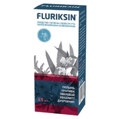 Спрей для полости рта Флюриксин Хлорофиллин на основе экстракта эвкалипта, крапивы, полыни горькой, дубровника и экстракта зверобоя применяется как средство гигиены полости рта. Компоненты средства сочетают в себе антисептические и противовоспалительные свойства. Экстракт эвкалипта применяется в качестве антисептического и противовоспалительного средства. Проявляет сильные бактерицидные свойства в отношении грамположительных, грамотрицательных микроорганизмов, губительно действует на грибы и простейшие, а также оказывает болеутоляющее действие, обладает иммуномодулирующим действием, укрепляет естественную защиту организма и борется с вирусами (с герпесом, фурункулезом, гриппом). Экстракт крапивы применяют для заживления ран. Экстракт зверобоя используют как вяжущее и антисептическое средство. Экстракт дубровника содержит дубильные вещества и эфирные масла. Экстракт полыни горькой используют как противовоспалительное и болеутоляющие средство.