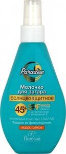 «Молочко солнцезащитное для загара SPF 45+ формула 250» Floresan — спрей объёмом 160 мл. Средство предназначено для фоточувствительной кожи, а также для любого типа кожи при очень активном солнце.Свойства: обеспечивает максимальную защиту от ультрафиолетовых лучей благодаря усиленному комплексу UVA/UVB-фильтров, защищает от ожогов, витамин Е нейтрализует свободные радикалы, предотвращая преждевременное старение кожи, кокосовое масло смягчает и увлажняет кожу, D-Panthenol обеспечивает защиту чувствительной кожи, склонной к обгоранию, препятствует появлению пигментации.