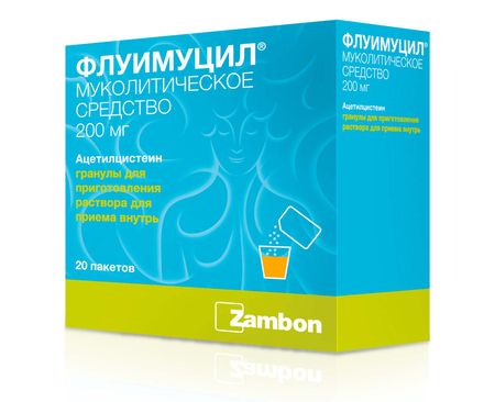 Флуимуцил гранулы для р-ра для приема внутрь 200мг №20
