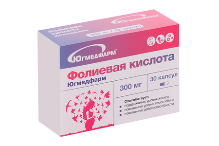Фолиевая кислота Югмедфарм, 300 мг, 30 шт, капсулы