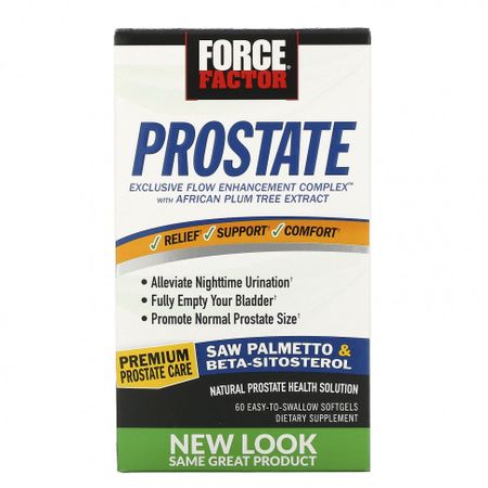 Смесь бета-ситостерола и традиционных растительных компонентов, таких как экстракт африканской сливы, крапивы двудомной и тыквенных семечек, поддерживает скорость мочеотделения и объем мочеиспускания, поэтому вы можете полностью опорожнить мочевой пузырь, почувствовав облегчение тогда, когда вам это нужно больше всего.Раскройте свой потенциал (Unleash Your Potential®)Что может быть хуже проблем со здоровьем простаты? Эта комплексная формула устраняет три наиболее отягчающих симптома.Крепкий сон на протяжении всей ночиПоздние ночные походы в ванную комнату могут испортить настроение вам и вашим близким по утрам. Force Factor® Prostate помогает избавиться от внезапных позывов к посещению ванной комнаты и позволит вам просыпаться отдохнувшими, восстановившимися и готовыми к новому дню.Полное опорожнение мочевого пузыря