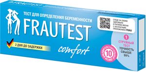 Комфорт и гигиеничностьОригинальная конструкция тест-кассеты с широким наконечником и закрывающимся колпачком обеспечивает гигиеничность тестированияFrautest Comfort. Тест для определения беременности.Особенности:Диагностика в любом местеДля получения результата достаточно подставить тест под струю мочиДостоверность более 99.9%Лабораторная точность полученного результатаРанняя диагностикаВысокая чувствительность к гормону ХГЧ (10 мМЕ/мл) позволяет проводить тестирования за 3 дня до начала менструацииТесты на беременность предназначены для определения хорионического гонадотропина человека (ХГЧ) в моче. Он присутствует в организме, как женщин, так и мужчин и его концентрация может достигать 5-7 мМЕ/мл. Значительно в больших количествах ХГЧ начинает вырабатываться развивающейся плацентой вскоре после оплодотворения и в течение первого триместра беременности достигает своего максимума на сроке 8-12 недель.Уровень ХГЧ беременной женщины в моче через 2 недели после зачатия составляет примерно 20-100 мМЕ/мл, таким образом к моменту тестирования концентрации ХГЧ как минимум в два раза превышает порог чувствительности теста. Тест можно использовать только один разFrautest Comfort — Струйный тест, предлагает дополнительные преимущества — комфорт и гигиеничность. Комфорт достигается за счет того, что нет необходимости собирать мочу, тестирование можно проводить в любое время и в любом месте. А благодаря оригинальной конструкции кассеты с широким наконечником обеспечивается гигиеничность тестирования.