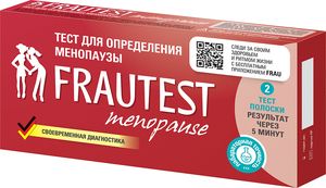 Тест «FRAUTEST menopause» поможет проверить наступление менопаузы. Принцип действия теста основан на определение длительного повышения ФСГ в моче. Чувствительность теста 25 мМЕ/мл. Существует 3 стадии менопаузы (климакса): Перименопауза (период перед менопаузой) — начинается после 45 лет и продолжается в среднем 15-18 месяцев (бывают случаи раннего наступления до 40 лет и позднего после 55 лет). В это время происходит постепенное угасание функции яичников, уменьшается выработка женских половых гормонов (эстрогена и прогестерона), а количество фолликулостимулирующего гормона (ФСГ) повышается. У женщин в этот период могут присутствовать симптомы «климактерического синдром»: головные боли, приливы (то есть внезапные покраснения лица, шеи, груди, затылка, сопровождающиеся чувством жара, такое состояние продолжается 2-3 мин, чаще по вечерам), учащенное сердцебиение, перепады настроения, сухость слизистых оболочек влагалища, утомляемость, снижение сексуальной активности. Менопауза — это период, когда наступает последняя менструация, а также ее отсутствие в течение следующих 12 месяцев. В среднем менопауза наступает в возрасте 50-53 лет. В этот период отмечается высокий уровень ФСГ. Постменопауза — этот период начинается после 12 месяцев отсутствия менструации. Уровень ФСГ в этот период остается повышенным. Все симптомы климактерического периода исчезают.