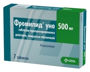 Фромилид уно Таблетки с пролонгированным высвобождением покрытые пленочной оболочкой 500 мг 7 шт