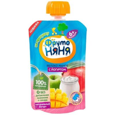Главная » Аптека Фрутоняня Пюре С Йогуртом Яблоко-Манго 90Г Просмотров 10 Детское питание Без добавления сахара Натуральный йогурт Прогресс