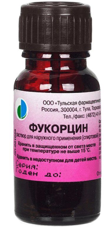 Главная » Аптека Фукорцин Р-Р Д/Наружн.прим.фл.10Мл Просмотров 8 Фармакологическое действие Обладает антисептическим и противогрибковым действием. Московская фармацевтическая фабрика