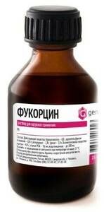 Главная » Аптека Фукорцин Раствор для наружного применения 25 мл Просмотров 4 Жидкость темно-красного цвета с характерным запахом фенола. Самарамедпром
