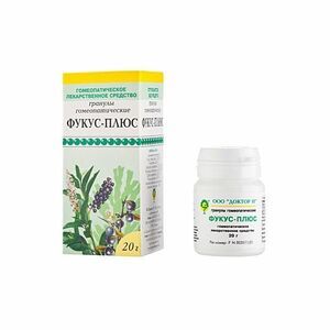 Главная » Аптека Фукус-плюс Гранулы гомеопатические 20 г Просмотров 7 Однородные гранулы правильной шаровидной формы белого или белого с серым или кремовым оттенком цвета, без запаха. ДОКТОР Н