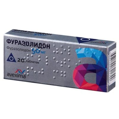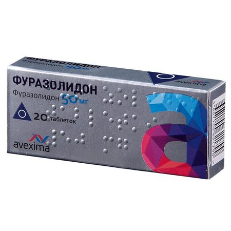 Фармакологическое действие Фармакологическая группа: Противомикробное и противопротозойное средство Код ATX:G01AX06 Фармакодинамика: Противомикробное средство, производное нитрофуранов. Активен в отношении грамположительных и грамотрицательных микробов, Trichomonas spp., Giardia lamblia. Наиболее чувствительны к фуразолидону Shigella dysenteria spp., Shigella flexneri spp., Shigella boydii spp., Shigella sonnei spp., Salmonella typhi, Salmonella paratyphi. Слабо влияет на возбудителей гнойной и анаэробной инфекции. Устойчивость микроорганизмов развивается медленно. Блокирует моноаминооксидазу. Нитрофураны нарушают процессы клеточного дыхания микроорганизмов, подавляют цикл трикарбоновых кислот (цикл Кребса), а также ингибируют биосинтез нуклеиновых кислот микроорганизмов, в результате чего происходит разрушение их оболочки или цитоплазматической мембраны. В результате действия нитрофуранов микроорганизмы выделяют меньше токсинов, в связи с чем улучшение общего состояния пациента возможно еще до выраженного подавления роста микрофлоры. В отличие от многих других противомикробных лекарственных средств они не только не угнетают, а даже активируют иммунную систему организма (повышают титр комплемента и способность лейкоцитов фагоцитировать микроорганизмы). Фармакокинетика: Хорошо абсорбируется при пероральном введении. На фоне воспаления мозговых оболочек в ликворе создаются концентрации, равные таковым в плазме. Быстро и интенсивно метаболизируется в основном в печени с образованием фармакологически неактивного метаболита (аминопроизводное). Выводится в основном почками (65%), небольшие количества обнаруживаются в фекалиях, где достигаются терапевтические концентрации в отношении возбудителей кишечных инфекций. Условия отпуска из аптек Без рецепта. Побочные явления Снижение аппетита, вплоть до анорексии; тошнота, рвота; аллергические реакции (кожная сыпь, гиперемия и зуд кожи, ангионевротический отек). При длительном применении – неврит. Особые указания Увеличивает угнетение кроветворения на фоне хлорамфеникола и ристомицина. Повышает чувствительность к действию этанола. Лекарственные средства, подщелачивающие мочу, снижают эффект, а подкисляющие — повышают. Аминогликозиды и тетрациклин усиливают противомикробные свойства. В ходе лечения должны соблюдаться меры предосторожности, как и при использовании ингибиторов моноаминооксидазы, а именно: исключение из диеты продуктов, содержащих тиамин: сыр, сливки, фасоль, маринованная сельдь, крепкий кофе. Для профилактики невритов при длительном применении нужно сочетать с витаминами группы B. Противопоказания Беременность, лактация. Повышенная индивидуальная чувствительность к группе нитрофуранов. Терминальная стадия хронической почечной недостаточности, дефицит глюкозо-6-фосфатдегидрогеназы, детский возраст до 3 лет (для данной лекарственной формы). С осторожностью: хроническая почечная недостаточность, дефицит глюкозо-6-фосфатдегидрогеназы, заболевания печени и нервной системы. Дозировка 50 мг Показания к применению Дизентерия, паратифы, лямблиоз, пищевые токсикоинфекции. Взаимодействие с другими лекарственными средствами Фуразолидон в сочетании с этанолом может привести к развитию дисульфирамоподобных реакций, в связи с чем, одновременный их прием не рекомендуется. Антидепрессанты, ингибиторы моноаминооксид