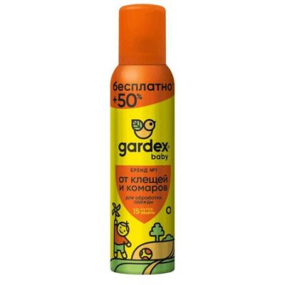 Аэрозоль от клещей и комаров Gardex Baby — ваше спасение в сезон активности насекомых! Средство работает и от клещей, и от комаров, а значит, ваш ребенок будет полностью под защитой Gardex. Аэрозоль от комаров и клещей Gardex Baby тщательно протестирован. Парализованный клещ отпадает от обработанной одежды через 2-3 минуты, не успевая прицепиться к телу. Испытания проводили ведущие специалисты – энтомологи страны в главных научных центрах России. Эффективность подтверждена НИИ Дезинфектологии Роспотребнадзора. Помните, клещи живут в траве. На прогулке ножки и ручки ребенка должны обязательно быть закрыты одеждой. Тщательно обрабатывайте, штанишки, курточку, рукава. Средство нужно наносить заранее, чтобы одежда успевала высохнуть до прогулки.