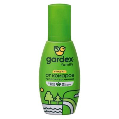 Спрей Gardex Family обеспечивает эффективную защиту от укусов комаров, мокрецов, москитов и других кровососущих насекомых. В состав спрея входит экстракт Алоэ-Вера. Предназначен для нанесения на кожу, обеспечивает защиту на 3-4 часа.