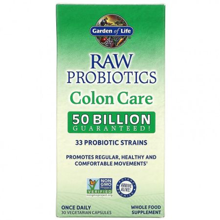 Garden of Life, RAW Probiotics, Colon Care, необработанные пробиотики для поддержки здоровья кишечника, 30 вегетарианских капсул