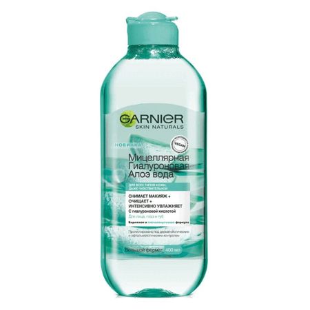 Если вы ищите эффективное, быстрое и легкое в использовании очищающее средство, попробуйте мицеллярную гиалуроновую алоэ воду от Garnier. Мицеллы притягивают макияж и загрязнения как магнит, а затем легко удаляются при помощи ватного диска без лишнего трения. Гиалуроновая кислота помогает увлажнить кожу, восстановить ее гладкостьи сияние. Подходит для всех типов кожи, даже чувствительной.