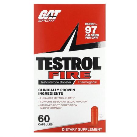 GAT, Testrol Fire, усилитель тестостерона, термогенный, 60 капсул