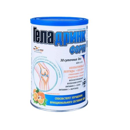 Геладринк ФОРТЕ является комплексным хондропротектором, который выполняет функцию восстановления нормального метаболизма хрящевой ткани, стимулирует процесс синтеза естественного коллагена, повышает антиоксидантную защиту и обеспечивает суставы и позвоночник дополнительными питательными веществами.