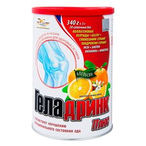 Геладринк Плюс-активное питание тканей суставов и позвоночника; повышение качества жизни при заболеваниях опорно-двигательного аппарата; улучшение состояния кожи, волос, ногтей.Геладринк Плюс способствует улучшению функционального состояния опорно-двигательного аппарата (ОДА), содержит комбинацию артро- и хондронутрицевтиков: коллагеновый гидролизат, глюкозамин и хондроитин сульфаты, а также основные минералы и витамины, которые защищают и питают все элементы опорно-двигательного аппарата (ОДА). Коллагеновый гидролизатЯвляется источником "строительного материала" для хрящей, связок и сухожилий. Способствует регенерации соединительнотканных элементов ОДА, стимулируя образование физиологического коллагена.Коллаген составляет основу соединительной ткани человека (хрящей, костей, связок, сухожилий, кожи, и др.) и обеспечивает её прочность. Коллагеновый гидролизат содержит в большом количестве аминокислоты (пролин, гидроксипролин, глицин), коллагеновые пептиды и биогенный трипептид — глицин-гистидин-лизин, которые обладают способностью оказывать положительное влияние на деятельность хрящевых и костных клеток, стимулируя синтез ими физиологического коллагена и других веществ, создающих хрящевую и костную матрицу.Глюкозамин сульфатОбладает противовоспалительным и обезболивающим действием, стимулирует биосинтез аминогликанов и способствует восстановлению хрящевых поверхностей суставов. Одновременно с этим нормализуется продукция внутрисуставной жидкости, что приводит к уменьшению дегенеративных изменений и болезненности в суставах, улучшает их подвижность и механико-эластические свойства. Стимулирует хондроциты на увеличение производства нормального коллагена и протеогликанов.Хондроитин сульфатСпособствует поддержанию упругости и эластичности хряща. Входит в состав синовиальной жидкости, которая влияет на гидратацию суставных хрящей и обеспечивает ее нормальные амортизационные свойства. Хондроитин обладает противовоспалительной активностью, стимулирует синтез гиалуроновой кислоты и протеогликанов, ингибирует действие протеолитических ферментов.Метилсульфонилметан (МСМ)Способствует поддержанию упругости и эластичности хряща. Входит в состав синовиальной жидкости, которая влияет на гидратацию суставных хрящей и обеспечивает ее нормальные амортизационные свойства. Хондроитин обладает противовоспалительной активностью, стимулирует синтез гиалуроновой кислоты и протеогликанов, ингибирует действие протеолитических ферментов. Является источником органических соединений серы. Участвуя в создании структуры коллагеновых волокон, сера способствует правильному формированию хрящевых и костных тканей. МСМ затормаживает перенос болезнетворных импульсов, ограничивает протекание воспалительных процессов в суставных тканях, поддерживает циркуляцию крови, ограничивает процессы образования отеков, улучшает питание суставных клеток, способствует релаксации мышечной ткани около позвоночника и купирует судорожные явления. Оказывает эффективное антиоксидантное действие.КальцийОсновной минерал организма. Участвует в процессах передачи нервных импульсов, мышечного сокращения и др. Соли кальция являются основными минеральными элементами костей, придающими им необходимую прочность.