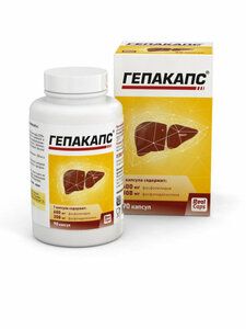 Биологически активная добавка к пище, комплекс эссенциальных (незаменимых) фосфолипидов, полученных из соевых бобов. Соевые фосфолипиды обладают широким спектром биохимических и физических свойств, являются биоактивными соединениями. В основе механизмов действия фосфолипидов растительного происхождения лежит их сходство с собственными фосфолипидами человека, которое обеспечивает их способность встраиваться в клеточные оболочки, предупреждая широкий ряд возможных патологических процессов.Фосфолипиды — жизненно важные элементы в структуре клеточных оболочек. Именно они придают оболочке клетки свойства, которые обеспечивают возможность протекания клеточных обменных процессов: поступление внутрь клетки питательных веществ, витаминов, биологически активных компонентов, выведение из клетки продуктов жизнедеятельности, токсинов, обмен различными веществами между клеткой и окружающей средой.Нарушение работы печени всегда сопряжено с повреждением структуры печёночных клеток, гепатоцитов, что вызывает ухудшение их функциональной активности и снижение способности к самовосстановлению.ГЕПАКАПС® содержит большое количество высокоактивных растительных фосфолипидов, в том числе фосфатидилхолина. Имея схожие с фосфолипидами человеческого организма свойства, высокоактивные эссенциальные фосфолипиды растительного происхождения обладают большей активностью за счет более высокого содержания полиненасыщенных жирных кислот. Встраиваясь в поврежденные участки клеточных мембран гепатоцитов, активные фосфолипиды способствуют восстановлению структуры клеток печени, создавая основу восстановлению их функциональной активности, улучшению обмена веществ, что позволяет обеспечить нормализацию важнейших метаболических процессов.Свойство эссенциальных фосфолипидов восстанавливать повреждённые оболочки клеток способствует:• повышению детоксикационной функции печени,• уменьшению риска замещения гепатоцитов соединительной тканью и ожирения печени,• стабилизации физико-химических свойств желчи.Эссенциальные фосфолипиды способны:• уменьшать атеросклеротические повреждения сосудов (нормализовать жировой состав крови, снижать уровень холестерина, разжижать кровь, препятствовать образованию холестериновых отложений в кровеносных сосудах),• предотвращать и растворять желчные камни,• растворять жиры в кишечнике, подготавливая их к расщеплению,• положительно влиять на течение обменных процессов,• уменьшать выраженность клинических проявлений при сахарном диабете,• уменьшать тяжесть псориатических высыпаний у больных с псориазом, снижать индекс распространенности и тяжести псориаза (PASI)В рекомендуемой суточной дозе 6 капсул массой 1580 мг содержится 3600 мг фосфолипидов, что составляет 51% от суточного адекватного уровня потребления.Пищевая и энергетическая ценность:6 капсул массой 1580 мг: белки — 1,5 г, жиры — 6 г, 60 ккал/ 250 кДж.