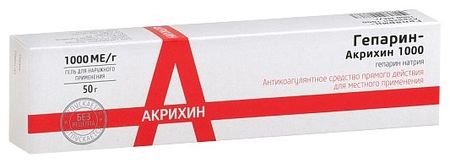 Гепарин-Акрихин гель д наруж.прим. 1000ЕД 50г