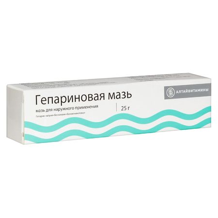 ПоказанияТромбофлебит поверхностных вен (профилактика и лечение); постинъекционный и постинфузионный флебит; наружный геморрой; воспаление послеродовых геморроидальных узлов; трофические язвы голени; слоновость; поверхностный перифлебит; лимфангит; поверхностный мастит; локализованные инфильтраты и отеки; травмы и ушибы (в т.ч. мышечной ткани, сухожилий, суставов), подкожная гематома.Фармакологическое действиеКомбинированное лекарственное средство для наружного применения. Гепарин — антикоагулянт прямого действия, относится к группе среднемолекулярных гепаринов. При наружном применении оказывает местное антикоагулянтное, противоэкссудативное, умеренное противовоспалительное действие. Блокирует образование тромбина. Гепарин уменьшает воспалительный процесс и оказывает антикоагулянтное действие, косвенно улучшает микроциркуляцию, что способствует процессу рассасывания гематом и тромбов и уменьшению отечности тканей.Бензокаин — местный анестетик для поверхностной анестезии. Уменьшая проницаемость клеточной мембраны для ионов натрия, блокирует проведение нервных импульсов. Препятствует возникновению болевых импульсов в окончаниях чувствительных нервов и их проведению, по нервным волокнам. Бензилникотинат расширяет поверхностные сосуды, способствуя всасыванию гепарина.Лекарственное взаимодействиеНе применять наружно одновременно с НПВС, тетрациклинами, антигистаминными лекарственными средствами.