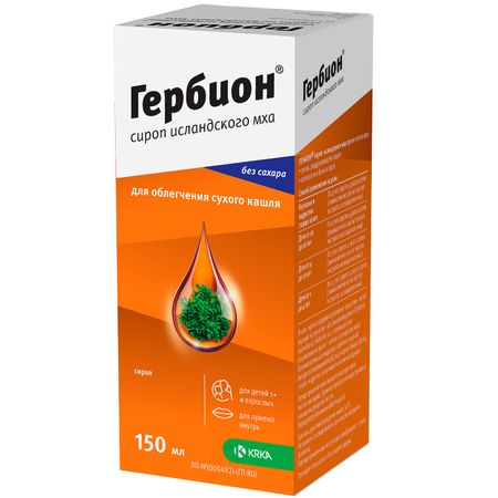 Гербион® сироп исландского мха содержит густой экстракт исландского мха. Относится к фармакотерапевтической группе «препараты, применяемые при кашле и простудных заболеваниях; противокашлевые препараты, исключая комбинации с отхаркивающими препаратами; противокашлевые препараты прочие» (для облегчения сухого кашля).