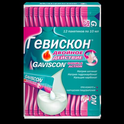 Фармакологическое действие После приема внутрь действующие вещества средства быстро взаимодействуют с кислым содержимым желудка. При этом образуется гель алгината со значением рН, близким к нейтральному. Гель формирует защитную оболочку на поверхности содержимого желудка, предотвращая возникновение гастроэзофагеального рефлюкса на период до 4 ч. В тяжелых случаях (при регургитации) гель попадает в пищевод быстрее остального желудочного содержимого, где уменьшает раздражение слизистой оболочки. Уменьшение раздражения ощущается через 3-4 мин после приема средства. Лекарственное взаимодействие Средство содержит кальция карбонат, который проявляет антацидную активность, поэтому между приемом данного средства и других препаратов должен быть интервал не менее 2 ч, особенно при одновременном применении с блокаторами гистаминовых Н2-рецепторов, антибиотиками из группы тетрациклина, дигоксином, фторхинолонами, солями железа, кетоконазолом, нейролептиками, левотироксином натрия, тиреоидными гормонами, пеницилламином, бета-адреноблокаторами (атенолол, метопролол, пропранолол), ГКС, хлорохином, бисфосфонатами и эстрамустином.