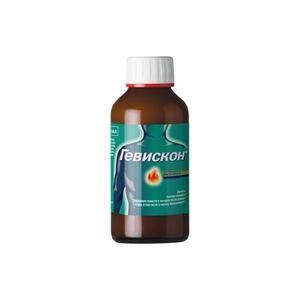 Показания к применениюСимптоматическое лечение диспепсии, связанной с повышенной кислотностью желудочного сока и гастроэзофагеальным рефлюксом (изжога, кислая отрыжка).ощущение тяжести в желудке после приема пищи, в т.ч. в период беременности.Применение при беременности и кормлении грудьюОткрытые контролируемые исследования с участием 281 беременной женщины и накопленный опыт применения не продемонстрировали каких-либо значимых нежелательных эффектов препарата Гевискон на течение беременности или здоровье плода и новорожденного ребенка. Гевискон можно применять при беременности и в период грудного вскармливания.ПротивопоказанияПовышенная чувствительность к компонентам Гевискон.Побочное действиеВозможны аллергические реакции.СоставГевискон — суспензия для приема внутрь (мятная): 10 мл содержит натрия альгинат 500 мг, натрия гидрокарбонат 267 мг, кальция карбонат 160 мг, во флаконах темного стекла по 100, 150 или 300 мл.Взаимодействие с другими препаратамиВ состав препарата входит кальция карбонат, который проявляет антацидную активность, поэтому между приемом препарата Гевискон и других препаратов должно пройти не менее 2 ч, особенно при одновременном применении с блокаторами гистаминовых Н2-рецепторов, антибиотиками из группы тетрациклина, дигоксином, фторхинолонами, солями железа, кетоконазолом, нейролептиками, левотироксином натрия, пеницилламином, бета-адреноблокаторами, ГКС, хлорохином, дифосфатами.