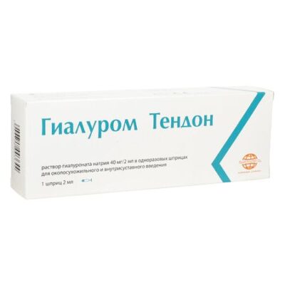 Гиалуром Тендон — стерильный, вязкоэластичный прозрачный, бесцветный раствор гиалуроната натрия высокой степени очистки. Гиалуронат натрия получен путем бактериальной ферментации, не содержит животного белка. Стерилизован влажным паром. Гиалуром Тендон предназначен для околосухожильного и внутрисуставного введения. ОСНОВНЫЕ ТЕХНИЧЕСКИЕ ХАРАКТЕРИСТИКИ Гиалуром Тендон — это стерильный, вязкоэластичный, прозрачный, бесцветный раствор натрия гиалуроната, помещен в одноразовый шприц из бесцветного стекла гидролитического класса I, силиконизированный и оснащенный эластомерным колпачком, штоком поршня и фланцем для управления. Градуировка шприца отсутствует, она не требуется, так как содержимое одного шприца используется однократно и предназначено только для одного пациента. Гиалуром Тендон имеет динамическую вязкость в диапазоне 35-65 Па•с, осмоляльность составляет 270-350 мОсмол/кг, плотность раствора — 1,005-1,025 г/см3. Сфера применения: хирургия, травматология, ортопедия, ревматология. СВОЙСТВА И МЕХАНИЗМ ДЕЙСТВИЯ Сухожилие — образование соединительной ткани с волокнистой структурой, предназначенное для прикрепления поперечно-полосатых мышц к костям скелета, передачи мышечного усилия к кости и способствуют распределению нагрузки во время мышечного сокращения. Сухожилия могут прилегать к волокнистым структурам, синовиальным оболочкам, перисухожильным тканям, синовиальным сумкам. Между листками сухожилий имеется синовиальная жидкость, облегчающая их движение. Перегрузка или несоответствующий биомеханический стресс могут привести к воспалительным изменениям и/или дегенеративным изменениям сухожилия и суставов, что, в свою очередь, является причиной появления боли и потери функции. Смазывание сухожилия и суставной поверхности помогает уменьшить боль, улучшить их функцию и снизить риск образования спаек. Гиалуроновая кислота обладает комбинированным действием, восстанавливая и увлажняя суставы, сухожилия, связки и кожу. Гиалуронат натрия из вязкоэластичного раствора Гиалуром Тендон полностью всасывается и способствует выработке гиалуроната естественным образом в организме. Раствор гиалуроната натрия распределяется местно в полости сустава или околосухожильном пространстве, где он подвергается локальным преобразованиям, оказывая смазывающее действие. Наивысшие концентрации гиалуроновой кислоты при исследованиях обнаружены в синовиальной жидкости, меньшие концентрации — в связках и прилегающих мышцах. Экскреция в основном осуществляется почками. В состав Гиалурома Тендон входит маннитол, который помогает стабилизации цепей гиалуроната натрия за счет нейтрализации свободных радикалов. Гиалуром Тендон является медицинским изделием. Предназначен для использования только врачом.