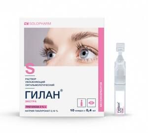 Раствор увлажняющий офтальмологический Гилан Комфорт (далее – Раствор) представляет собой бесцветную слегка вязкую жидкость без запаха.Свойства и эффективностьМедицинское изделие Гилан Комфорт представляет собой стерильный 0,18 % водный раствор натрия гиалуроната, не содержащий консервантов.Действующее вещество – высокоочищенный натрия гиалуронат, произведенный методом бактериальной ферментации. Натрия гиалуронат является физиологическим полисахаридным соединением, содержащимся как в тканях глаза, так и других тканях и жидкостях организма человека.Особым физико-химическим свойством молекул натрия гиалуроната является их выраженная способность связывать молекулы воды. Водный раствор натрия гиалуроната (ГИЛАН) обладает необходимой вязкостью и высокими адгезивными свойствами.При применении офтальмологического раствора Гилан Комфорт на эпителии роговой оболочки глаза образуется тонкая равномерная пленка, предохраняющая глаза от пересыхания, раздражения и развития воспаления передней поверхности глазного яблока. Действие защитной пленки начинается практически сразу, тем самым глаза надолго защищены от ощущения сухости, рези, чувства инородного тела, раздражения, которые часто возникают при работе за компьютером, при длительном использовании кондиционеров или другого офисного оборудования, в случаях ухудшения экологической обстановки.При систематическом ношении контактных линз рекомендуется применение офтальмологического раствора Гилан Комфорт, который способствует длительному увлажнению глаза, так как его действие идентично натуральной слезной жидкости. Раствор имеет показатель вязкости 3,5 — 8,0 мПа·с. Офтальмологический раствор Гилан Комфорт не содержит консервантов, поэтому отсутствует нежелательное токсическое действие на ткани глаза. Возможно длительное применение данного раствора.Область применения и назначениеРаствор предназначен для использования в офтальмологии для ухода за глазами путем закапывания в конъюнктивальный мешок.Раствор увлажняющий офтальмологический Гилан Комфорт воспроизводит действие естественной слезы, защищает и увлажняет поверхность глаза и смазывает ее. Это средство оказывает долговременное облегчающее действие при сухости глаз, обусловленной различными факторами: нарушения слезной пленки, что приводит к понижению секреции слезы и вызывает симптомы дискомфорта, воздействие внешней среды (центральное отопление, климатические установки, флуоресцентные лампы, хлорированная вода, кондиционированный воздух, различные природные явления – ветер, холод, пыль, дым, смог), частая продолжительная работа за монитором компьютера, использование сосудосуживающих или противовоспалительных офтальмологических препаратов, изменения гормонального фона (менопауза), пожилой возраст (75 % населения старше 65 лет страдает синдромом «сухого» глаза).