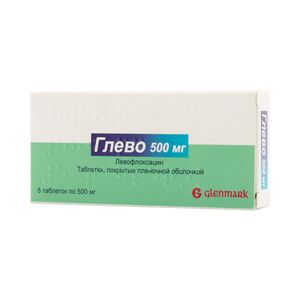 Показания к применениюБактериальные инфекции, чувствительные к левофлоксацину, у взрослых: острый синусит, обострение хронического бронхита, внебольничная пневмония, неосложненные инфекции мочевыводящих путей, осложненные инфекции мочевыводящих путей (включая пиелонефрит), хронический бактериальный простатит, инфекции кожных покровов и мягких тканей, септицемия/бактериемия, связанные с указанными выше показаниями, инфекции брюшной полости, для комплексного лечения лекарственно-устойчивых форм туберкулеза.Применение при беременности и кормлении грудьюПрименение препарата противопоказано при беременности и в период лактации.ПротивопоказанияГиперчувствительность к левофлоксацину и другим фторхинолонам, эпилепсия, поражение сухожилий при ранее проводившемся лечении хинолонами, беременность, период лактации, детский и подростковый возраст (до 18 лет).СоставЛевофлоксацин (levofloxacin) 500 мг.Взаимодействие с другими препаратамиПри одновременном применении левофлоксацин увеличивает Т1/2 циклоспорина. Действие препарата снижают лекарственные средства, угнетающие моторику кишечника, сукральфат, алюминий/магнийсодержащие антацидные лекарственные средства и соли железа (необходим перерыв между приемом не менее 2 ч). При одновременном применении Глево с НПВС, теофиллином повышается судорожная готовность. При одновременном применении Глево с ГКС повышается риск разрыва сухожилий. Циметидин и препараты, блокирующие канальцевую секрецию, замедляют выведение левофлоксацина. При одновременном применении гипогликемических препаратов с левофлоксацином возможно развитие гипо- и гипергликемии. Поэтому необходим строгий контроль уровня глюкозы в крови.