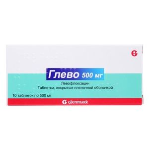 Показания к применениюБактериальные инфекции, вызванные чувствительными к препарату микроорганизмами, у взрослых:Острый синусит.Обострение хронического бронхита.Внебольничная пневмония.Неосложненные инфекции мочевыводящих путей.Осложненные инфекции мочевыводящих путей (в т.ч. Пиелонефрит).Хронический бактериальный простатит.Инфекции кожи и мягких тканей.Септицемия/бактериемия, связанные с указанными выше Показания к применениюми.Инфекции брюшной полости.Комплексное лечение лекарственно-устойчивых форм туберкулеза.Применение при беременности и кормлении грудьюПрименение препарата противопоказано при беременности и в период лактации.ПротивопоказанияЭпилепсия. Поражение сухожилий при ранее проводившемся лечении хинолонами. Беременность. Период лактации (грудного вскармливания). Детский и подростковый возраст (до 18 лет). Повышенная чувствительность к левофлоксацину и другим фторхинолонам. С осторожностью следует назначать препарат пациентам пожилого возраста (из-за высокой вероятности наличия сопутствующего снижения функции почек), при дефиците глюкозо-6-фосфатдегидрогеназы.СоставВ 1 таблетке содержится: левофлоксацин (в форме гемигидрата) 500 мг Вспомогательные вещества: целлюлоза микрокристаллическая, повидон (повидон К-30), кросповидон, магния стеарат, целлюлоза микрокристаллическая (авицел pН101). Состав пленочной оболочки: гипромеллоза, макрогол (полиэтиленгликоль 6000), дибутилфталат, тальк, титана диоксид, краситель железа оксид красный, краситель железа оксид желтый.Взаимодействие с другими препаратамиПри одновременном применении левофлоксацин увеличивает Т1/2 циклоспорина. Действие препарата снижают лекарственные средства, угнетающие моторику кишечника, сукральфат, алюминий/магнийсодержащие антацидные лекарственные средства и соли железа (необходим перерыв между приемом не менее 2 ч). При одновременном применении Глево с НПВС, теофиллином повышается судорожная готовность. При одновременном применении Глево с ГКС повышается риск разрыва сухожилий. Циметидин и препараты, блокирующие канальцевую секрецию, замедляют выведение левофлоксацина. При одновременном применении гипогликемических препаратов с левофлоксацином возможно развитие гипо- и гипергликемии. Поэтому необходим строгий контроль уровня глюкозы в крови.