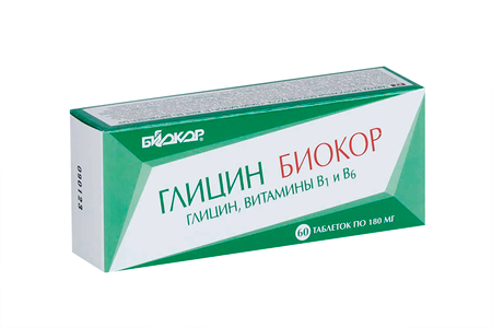 Глицин Биокор с витаминами В6 и В1, 180 мг, 60 шт, таблетки