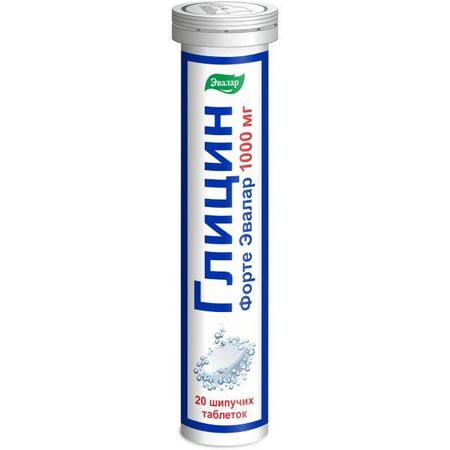 Глицин Форте Эвалар таблетки шипучие 1000мг 3,8г 20шт