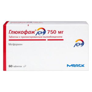 Показания к применению Сахарный диабет 2 типа у взрослых, особенно у пациентов с ожирением, при неэффективности диетотерапии и физических нагрузок: в качестве монотерапии в сочетании с другими пероральными гипогликемическими средствами или с инсулином. Монотерапия предиабета в случае, если изменение образа жизни не позволило достичь адекватного гликемического контроля.Применение при беременности и кормлении грудьюБеременность Неконтролируемая гипергликемия в периконцепционный период и во время беременности связана с повышенным риском врожденных пороков, выкидышей, артериальной гипертензией, вызванной беременностью, преэклампсией и перинатальной смертностью.Необходимо поддерживать концентрацию глюкозы в плазме крови, как можно ближе к норме, для снижения риска возникновения неблагоприятных исходов, ассоциированных с гипергликемией, для матери и плода. Метформин проникает через плаценту в концентрациях, которые могут быть такими же высокими, как и у матери. Большое количество данных о беременных женщинах (>1000 случаев), полученных в рамках когортного исследования на основе регистров, опубликованных в реестре (мета-анализы, клинические исследования и реестры), указывают на отсутствие повышенного риска врожденных аномалий или фето-/неонатальной токсичности после воздействия метформина в периконцепционныйпериод и/или во время беременности. Имеются ограниченные и неубедительные данные о влиянии метформина на долгосрочные результаты массы тела детей, подвергавшихся воздействию метформина внутриутробно. Метформин не влияет на двигательное и социальное развитие у детей в возрасте до 4 лет, подвергшихся воздействию препарата во время беременности, хотя данные о долгосрочных результатах ограничены. В случае клинической необходимости, применение метформина может быть рассмотрено во время беременности и в периконцепционный период в качестве дополнения или альтернативы инсулину. Грудное вскармливаниеМетформин проникает в грудное молоко.Нежелательные реакции у новорожденных при грудном вскармливании на фоне приема метформина не наблюдались.Однако в связи с ограниченным количеством данных, применение препарата в период грудного вскармливания не рекомендовано.Решение о прекращении грудного вскармливания должно быть принято с учетом пользы от грудного вскармливания и потенциального риска возникновения нежелательных реакций у ребенка. ФертильностьМетформин не влиял на фертильность самцов и самок крыс при введении в дозах до 600 мг/кг/день, что примерно в три раза превышает максимальную рекомендуемую суточную дозу.Состав 1 таблетка содержит:Действующее вещество: метформина гидрохлорид — 750,0 мг,Вспомогательные вещества: кармеллоза натрия — 37,5 мг, гипромеллоза 2208 — 294,24 мг, магния стеарат — 5,3 мг.