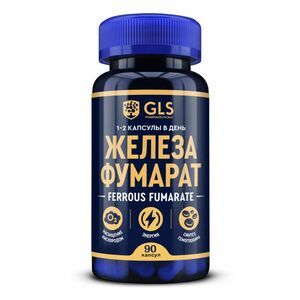 «Железа фумарат» — биологически активная добавка к пище — гидроксипропилметилцеллюлозные капсулы.Подходит для вегетарианцев.Фумарат железа (II) — органический источник железа с высокой степенью усваиваемости, не имеет характерного железного привкуса.Железо необходимой компонент для синтеза гемоглобина и миоглобина. Способствует переносу кислорода к органам и тканям и выведению углекислого газа из организма.Участвует в окислительно-восстановительных реакциях организма, стимулирует синтез эритроцитов. Железо необходимый компонент для правильной работы иммунной системы.Железа фумарат компенсирует естественные потери железа у мужчин и у женщин.Недостаток железа в организме приводит к развитию железодефицитных состояний (анемии): снижению работоспособности. утомляемости. слабости. головокружениям. выпадению волос. ломкости ногтей. бледности кожных покровов.Прием Железа фумарата будет способствовать: восполнению естественных потерь железа в т.ч. при менструациях и занятиях спортом, профилактике развития железодефицитной анемии и ее негативных проявлений, повышению выносливости и работоспособности, улучшению спортивных показателей, улучшению мозговой деятельности.Биологически активное вещество Содержание,мг/1 капс. УСП1, мг % от УСП1Железо (мужчины) 20,0 14,01 1432Биологически активное вещество Содержание, мг/2 капс. УСП1, мг % от УСП1Железо (женщины) 40,0 14,01 28621 уровень суточного потребления.2 рекомендуемый уровень суточного потребления согласно требованиям ТР ТС 022 (приложение 2)3 не превышает верхний допустимый уровень суточного потребления.Рекомендуемая суточная доза для мужчин 1 капсула массой 400 мг содержит 20 мг элементарного железа, что составляет 143 % от уровня суточного потребления и не превышает верхний допустимый уровень.Рекомендуемая суточная доза для женщин 2 капсулы массой по 400 мг содержат 40 мг элементарного железа, что составляет 286 % от уровня суточного потребления и не превышает верхний допустимый уровень.