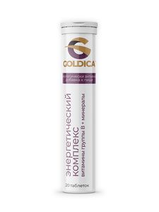 Goldica Энергетический комплекс Витамины группы В + минералы — биологически активная добавка, разработана для поддержания энергетического баланса организма, укрепления иммунитета и улучшения общего состояния здоровья.Комплекс содержит высокую концентрацию витаминов группы В (В1, В2, В5, В6, В12), фолиевую кислоту, ниацин, биотин, а также витамин С, цинк, кальций и магний. Эти компоненты играют важную роль в энергетическом обмене, формировании красных кровяных телец, поддержании здоровья нервной системы, кожи, волос и ногтей.Обогащен:Витамины группы В — участвуют в обмене веществ, помогают преобразовывать пищу в энергию и поддерживают нормальное функционирование нервной системы, кожи и слизистых оболочек.Фолиевая кислота — необходима для нормального развития клеток и формирования красных кровяных телец.Ниацин — способствует улучшению кровообращения и снижению уровня холестерина в крови.Витамин В6 — участвует в белковом обмене и поддерживает здоровье нервной системы.Витамин В12 — необходим для нормального кроветворения и функционирования нервной системы.Биотин — способствует укреплению волос, ногтей и кожи.Витамин С — укрепляет иммунитет, способствует заживлению ран и улучшению состояния сосудов.Минералы (цинк, кальций, магний) — необходимы для поддержания здоровья костей, зубов, мышц и нервной системы.Направлен на:поддержание энергетического баланса и повышение работоспособностиукрепление иммунитета и снижение риска инфекционных заболеванийулучшение состояния кожи, волос и ногтейподдержка здоровья нервной системы и снижение стрессанормализация обмена веществ и улучшение усвоения питательных веществВажно помнить, биологически активные добавки не являются лекарственными средствами и не могут заменить полноценное лечение, перед началом приема рекомендуется проконсультироваться с врачом.