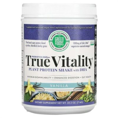 † Суточная доза не определена Полноценный сбалансированный веганский перекус для оптимального пищеварения и хорошего здоровья Богатые нутриентами суперпродукты С 1979 года Натуральное, придает энергию, питает Суперсмесь растительных протеинов + спирулина, хлорелла и проростки ячменя 1000 мг ДГК Life из вегетарианской омега-3 ДГК для жизни — здоровый мозг, глаза и сердце 8 миллиардов пробиотиков Максимальная биодоступность • Улучшение пищеварения • Здоровье кишечника Не содержит молочных продуктов Не содержит глютена Сертифицированный веганский продукт Не содержит ГМО Не содержит соиПреимущества Green FoodsГлавный принцип Green Foods: лучший способ дать организму питание в периоды, когда необходима максимальная отдача — это предоставить ему натуральные органические и биодоступные продукты, в которых содержатся нутриенты, необходимые для хорошего здоровь…