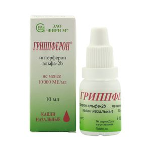Показания к применениюПрофилактика и лечение гриппа и ОРВИ у детей и взрослых.Применение при беременности и кормлении грудьюГриппферон разрешен к применению в течение всего периода беременности в соответствии с возрастной дозой.ПротивопоказанияИндивидуальная непереносимость препаратов интерферона и компонентов, входящих в состав препарата.Тяжелые формы аллергических заболеваний.Побочное действиеАллергические реакции.СоставДействующее вещество: Аинтерферон альфа-2b человеческий рекомбинантный не менее 10 000 МЕВспомогательные вещества: динатрия эдетата дигидрат, натрия хлорид, натрия гидрофосфата додекагидрат, калия дигидрофосфат, повидон 8000, макрогол 400, вода очищенная.Концентрация действующего вещества: аинтерферон альфа-2b человеческий рекомбинантный не менее 10 000 МЕВзаимодействие с другими препаратамиПрименение интраназальных сосудосуживающих препаратов совместно с Гриппфероном не рекомендуется, так как это способствует дополнительному высушиванию слизистой оболочки носа.