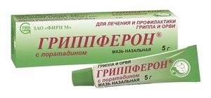 Показания к применению— профилактика и лечение гриппа и острых респираторных вирусных инфекций (ОРВИ) в составе комплексной терапии у взрослых, в т.ч. у пациентов с аллергическим ринитом.Применение при беременности и кормлении грудьюНет данных по использованию препарата во время беременности и лактации.Противопоказания— повышенная чувствительность к интерферону альфа-2b, лоратадину или другим компонентам препарата — детский возраст до 18 лет (в связи с отсутствием данных по эффективности и безопасности препарата у детей) — беременность, период грудного вскармливания.Побочное действиеВозможно чиханье, зуд в месте нанесения, временное нарушение обоняния.Состав1 г интерферон альфа-2b человеческий рекомбинантный не менее 10000 МЕ лоратадин 2 мг. Вспомогательные вещества: сахар-рафинад (529.9 мг), какао порошок, ванилин, натрия карбоксиметилцеллюлоза, кальция стеарат.