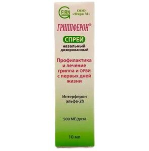 Показания к применениюПрофилактика и лечение гриппа и ОРВИ у детей и взрослых.Применение при беременности и кормлении грудьюГриппферон разрешен к применению в течение всего периода беременности. Не имеет ограничений к применению в период лактации.ПротивопоказанияИндивидуальная непереносимость препаратов интерферона и компонентов, входящих в состав препарата Гриппферон; тяжелые формы аллергических заболеваний.Побочное действиеАллергические реакции.СоставДействующее вещество: интерферон альфа-2b человеческий рекомбинантный не менее 10000 МЕВспомогательные вещества: динатрия эдетата дигидрат 0, 5 мг; натрия хлорид 4, 1 мг; натрия гидрофосфата додекагидрат 11, 94 мг; калия дигидрофосфат 4, 54 мг; повидон-8 тыс. 10 мг; макрогол 4000 100 мг; вода очищенная до 1 мл.Взаимодействие с другими препаратамиПрименение интраназальных сосудосуживающих препаратов совместно с Гриппфероном не рекомендуется, так как это способствует дополнительному высушиванию слизистой оболочки носа.