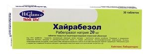 Показания к применению— язвенная болезнь желудка и двенадцатиперстной кишки в стадии обострения — гастроэзофагеальная рефлюксная болезнь — гиперсекреторные состояния, включая синдром Золлингера-Эллисона — стрессовые язвы ЖКТ. В составе комплексной терапии: — эрадикация Helicobacter pylori у пациентов с язвенной болезнью желудка и двенадцатиперстной кишки или хроническим гастритом — лечение и профилактика рецидива язвенной болезни, связанной с Helicobacter pylori.Применение при беременности и кормлении грудьюРабепразол не следует назначать при беременности (данных по безопасности применения рабепразола при беременности нет). Неизвестно, выделяется ли рабепразол с грудным молоком. Соответствующие исследования у кормящих женщин не проводились. На время лечения следует прекратить грудное вскармливание.Противопоказания— беременность — грудное вскармливание — детский и подростковый возраст до 18 лет — повышенная чувствительность к рабепразолу, бензимидазолам или другим компонентам препарата. С осторожностью следует назначать препарат при тяжелой печеночной недостаточности, тяжелой почечной недостаточности.Побочное действиеКлассификация ВОЗ нежелательных побочных реакций по частоте развития: очень часто — 1/10 назначений ( 10%), часто — 1/100 назначений ( 1%, но меньше 10%), нечасто — 1/1000 назначений ( 0.1%, но меньше 1%), редко — 1/10 000 назначений ( 0.01%, но меньше 0.1%), очень редко — менее 1/10 000 назначений (меньше 0.01%). Со стороны пищеварительной системы: часто — диарея, тошнота; нечасто — рвота, боль в животе, метеоризм, запор; редко — сухость во рту, отрыжка, диспепсия; очень редко — нарушение вкусовых ощущений, анорексия, стоматит, гастрит, повышение активности трансаминаз. Со стороны нервной системы и органов чувств: часто — головная боль; редко — головокружение, астения, бессонница; очень редко — нервозность, сонливость, депрессия, нарушения зрения, нарушения вкусовых ощущений. Со стороны костно-мышечной системы: редко — миалгия; очень редко — артралгия, судороги икроножных мышц. Со стороны дыхательной системы: редко — воспаление или инфекция верхних дыхательных путей, сильный кашель; очень редко — синусит, бронхит. Со стороны органов кроветворения и системы гемостаза: редко — тромбоцитопения, лейкопения; очень редко — лейкоцитоз. Аллергические реакции: редко — сыпь, кожный зуд. Прочие: редко — боль в спине, груди, конечностях, отеки, инфекция мочевыводящих путей, лихорадка, озноб, гриппоподобный синдром; очень редко — повышенная потливость, увеличение массы тела.Состав1 таб. рабепразол натрия 20 мг. Вспомогательные вещества: магния оксид — 69 мг, маннитол — 40 мг, крахмал кукурузный — 2.